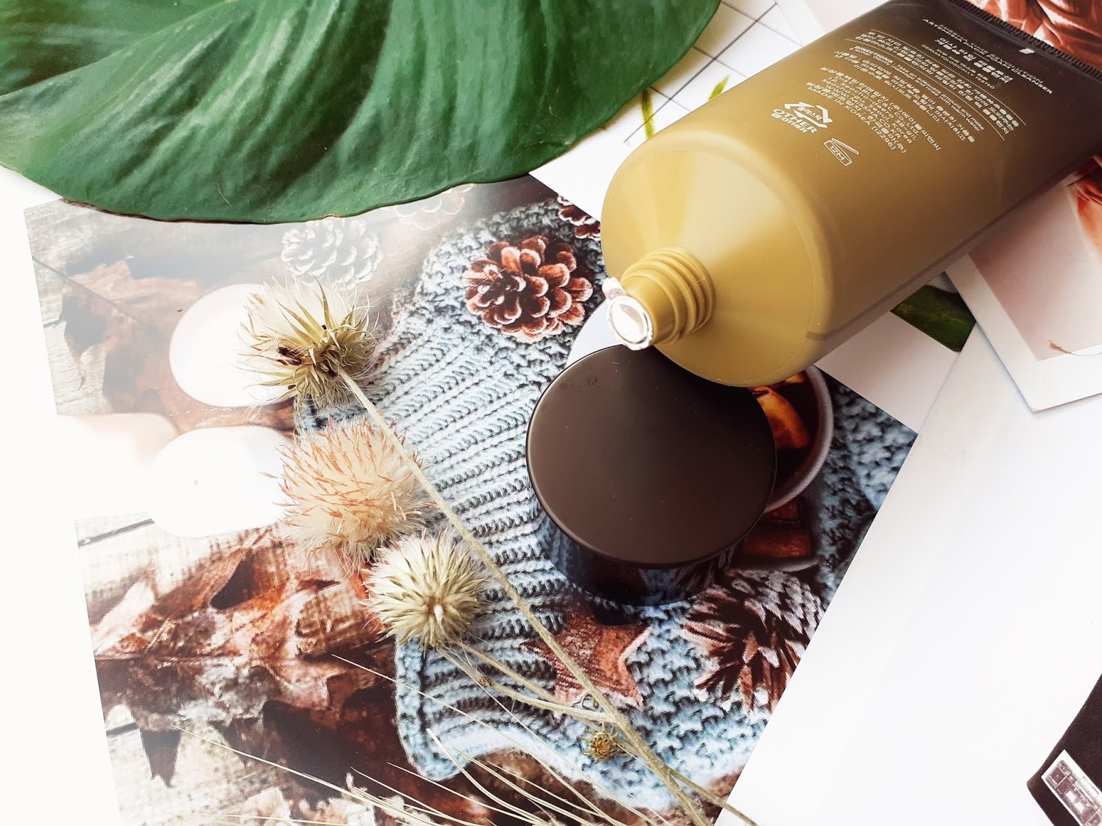The packaging is very luxurious. It has a very expensive feel to it ( see the embossed design on the box) I am very happy to see this mask packed in a tube . Makes it so much easy to apply it to the face. Also prevents the mask from drying out . So one thing that is a common trait with mud masks is that they dry out the skin / suck out all the moisture. Which is a good thing in my skincare dictionary as I have oily skin and I love good sebum / pore clearing mask. But many people like mud masks which retain moisture in the skin to some extend